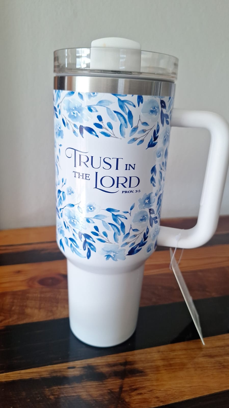 The Trust in the Lord Blue Botany 40 oz Stainless Steel Travel Tumbler with Straw is a beautiful, practical gift or everyday use travel mug. The Trust in the Lord Blue Botany 40 oz Stainless Steel Travel Tumbler with Straw combines convenience with a heartfelt spiritual message.